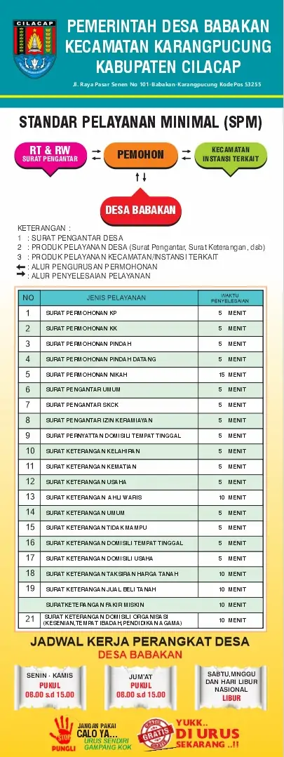 Standar Pelayanan Minimal (SPM) Desa adalah ukuran dasar yang digunakan pemerintah desa untuk menjamin terselenggaranya pelayanan publik yang wajib diberikan kepada masyarakat secara adil, transparan, dan berkelanjutan. SPM menjadi acuan bagi pemerintah desa dalam memberikan pelayanan yang memenuhi hak-hak dasar warga.